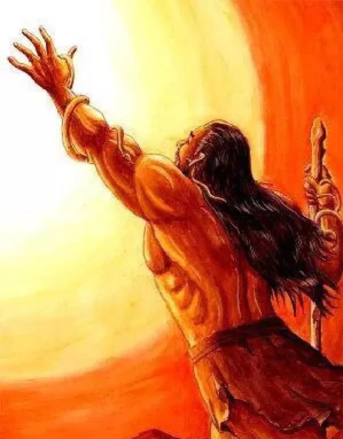 夸父:传说是炎帝的后裔。追赶太阳快到的时候,因为很渴,于是喝光黄河和渭河,又要北上喝大泽中的水,但是还没走到,就渴死了。死时所抛掉的手杖,变成了一片桃林。这个桃林只不过只有两棵,但是这两棵树非常大,所以二木成林了。