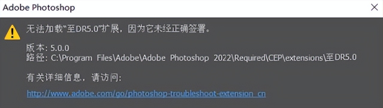 PS安装DR5磨皮插件报错显示无法加载"至臻版DR5.0"扩展,因为它未经正确签署。下面说说明这个问题的设置方法。