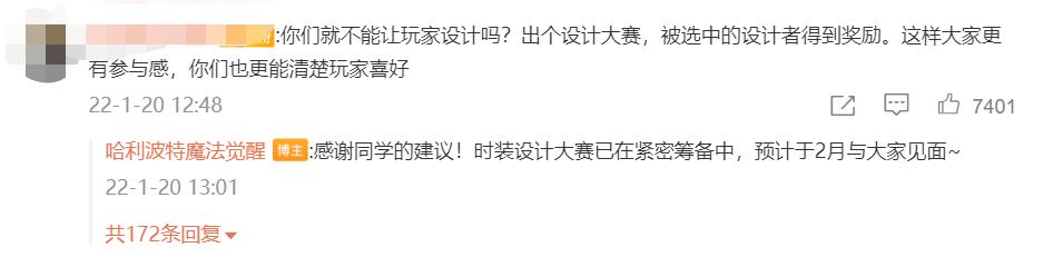 网友@萝卜子的麻麻一条“Zen工作室请停止你的迷之摆烂策划,网易请正视玩家诉求”的微博获得超过2.6万点赞。她对第一财经表示,《哈利波特:魔法觉醒》此前每个月的活动一般是一套直售服装,和一套靠转盘服装,但春节活动游戏设置了双转盘,“逼氪”玩家,同时服装也存在缺陷。