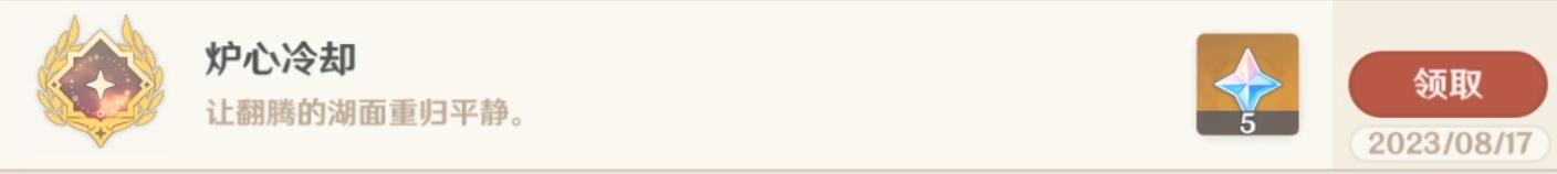 挑战铁皮子爵需要初步冷却厄里那斯沸水湖,通过激活沸水湖的机关将我们移动至铁皮子爵所在的洞窟之中,完成洞窟的降温解密机关后铁皮子爵才会出现。击败铁皮子爵之后通过挑战处出现的洋流一路返回到沸水湖附近的井下密室内,借助机关飞出来的瞬间弹成就【炉心冷却】。