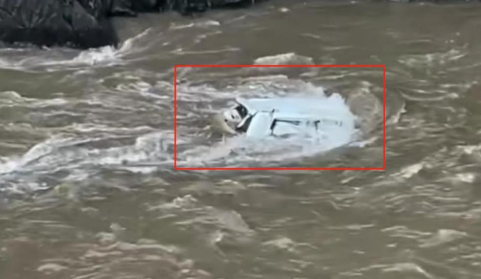崖底下是湍急的河水,救援队后来在距离事发地点差不多两公里外的河段,才找到那辆冲下去的车。