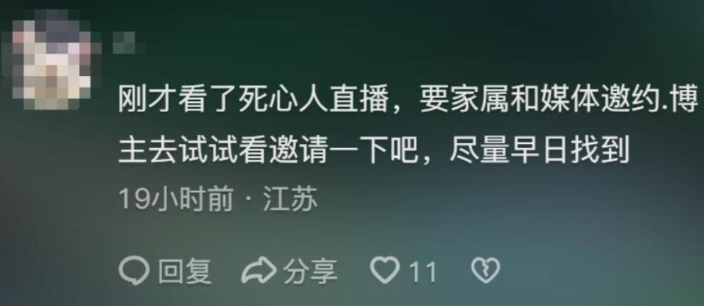 大家心疼之余,也纷纷留言,劝家属赶紧联系一个叫“死心人”的博主——他是专门做民间救援的,经验非常丰富,出过不少力、救过不少人。