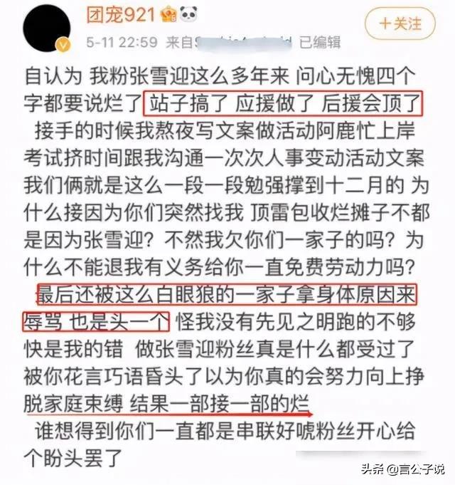根据粉丝的自述,真的是为了张雪迎做了很多,熬夜写文案做活动,辟谣宣传…