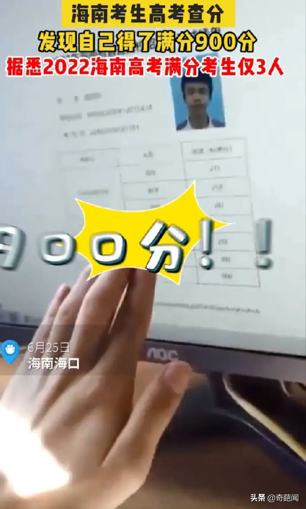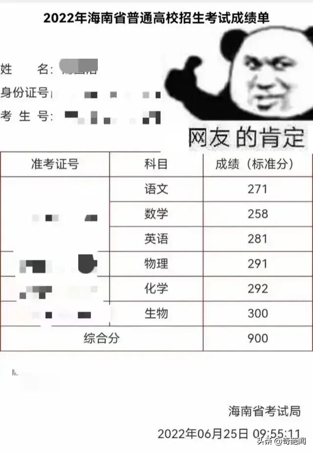 恭喜!海南一男生考出900分满分,家人激动不已,网友:第一次见