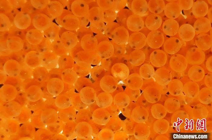 孵化托盘内,一颗颗细小圆球状的鱼卵,密密麻麻地排列着。 吉桂金 摄