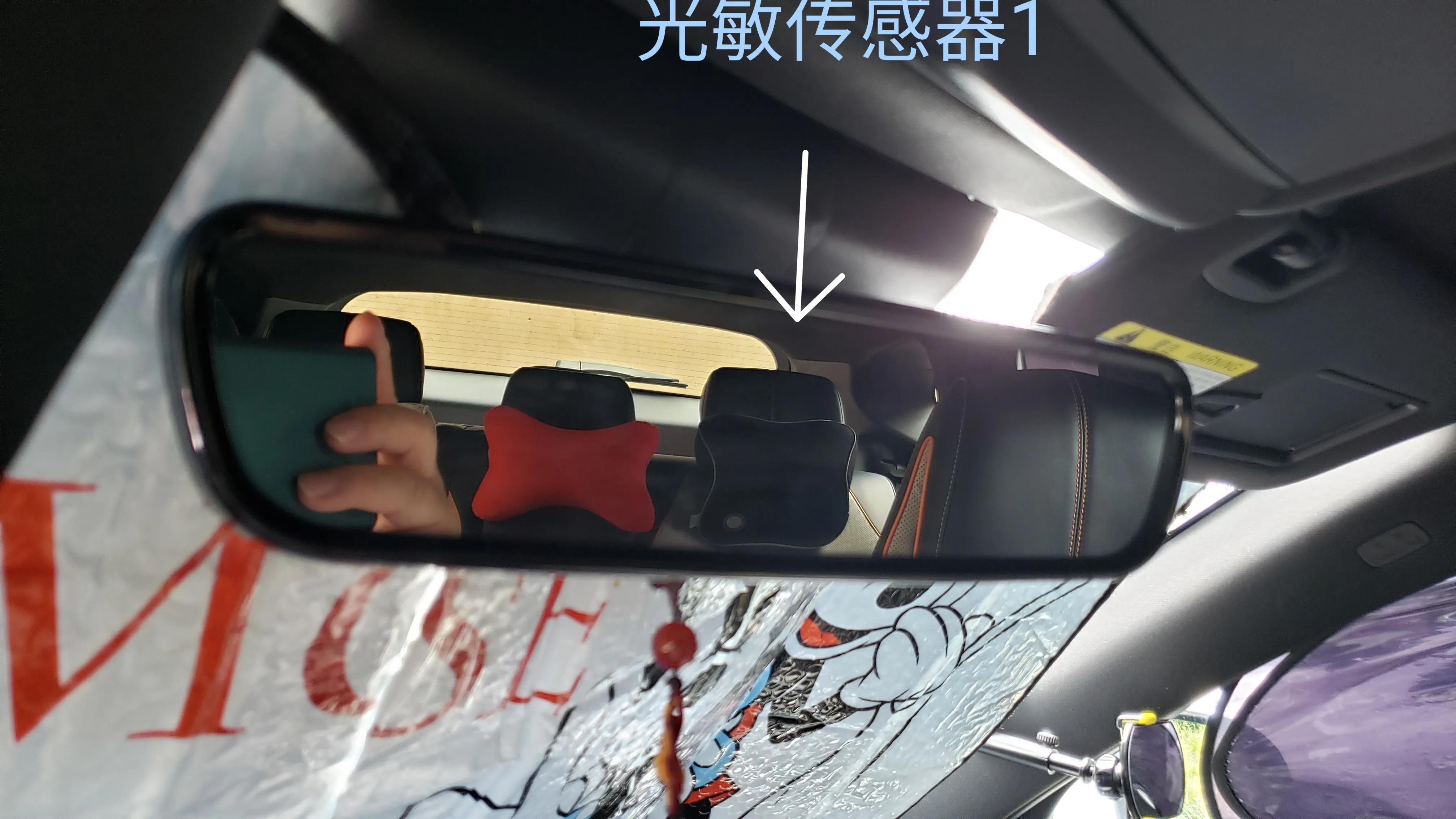传感器1是隐藏在镜面上方镜片后面的一颗光敏电阻,主要收集后车灯光数据。