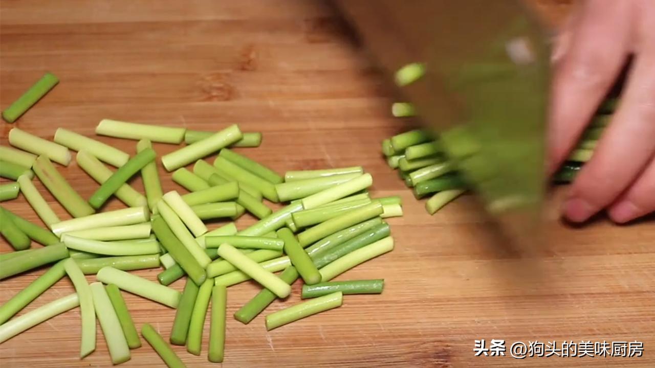 3.准备一把蒜苔,切成段备用。