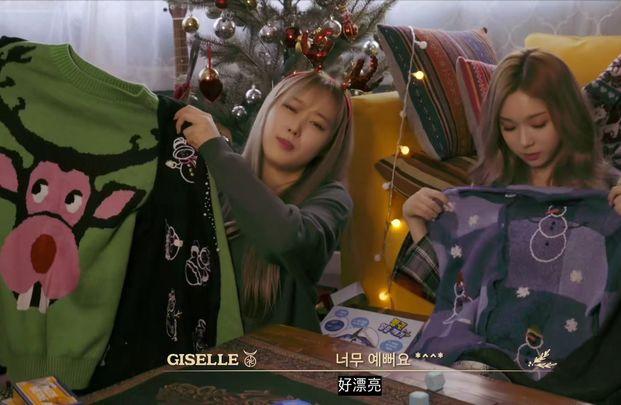 随后,WINTER居然转手给了绘里一件全场最丑的毛衣,绘里还要强打精神非常违心的夸赞——