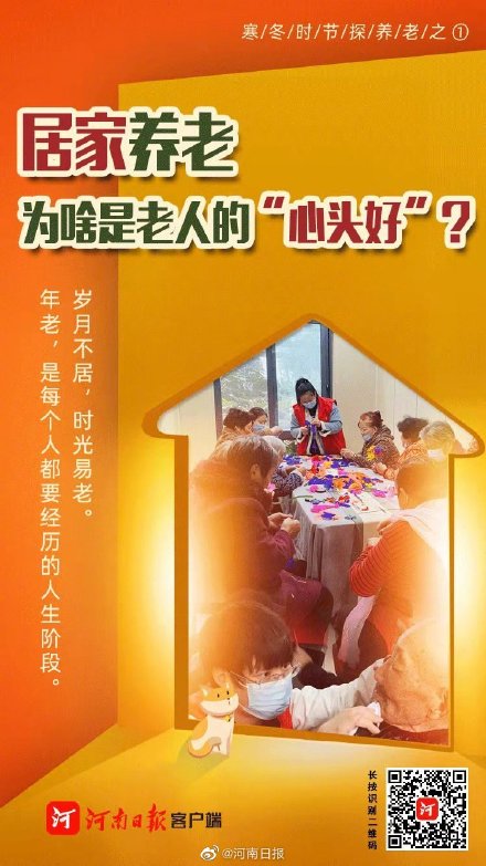 每个人都有年老的一天,你操心你未来的养老吗?凛冬已至,记者探访河南老人养老状况,发现居家养老、社区养老和机构养老已经成为养老的三种基本模式,并且居家养老又成了绝大多数老人的选择。国家层面也是如此,国家卫健委工作人员介绍,现阶段中国养老的特点是:90%中国老人居家养老,7%左右依托社区养老,3%入住机构养老,也即“9073”模式。