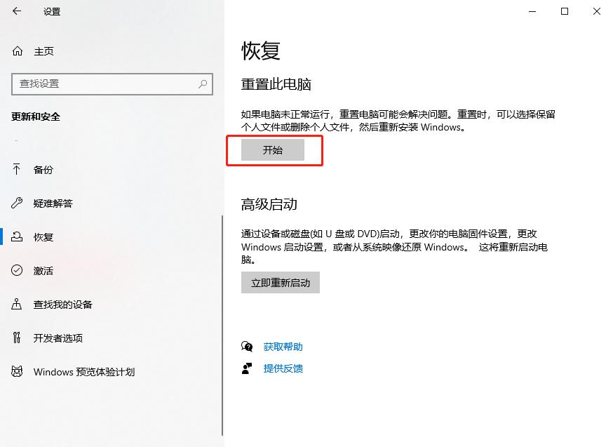 3. 选择合适的恢复方式,按照提示开始重置电脑即可。
