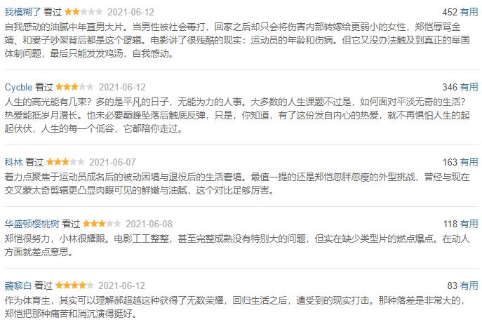 虽说票房目前已经过亿,但是口碑不尽人意,是郑恺的演技不行吗?还是苏炳添没有指导好郑恺吗?我觉得都不是,郑恺的演技和努力都是大家有目共睹的,增肥再减肥,试问有多少演员能够做到这样,关于苏炳添的专业技能我们就更不用怀疑,单单是100米亚洲纪录保持者,已经是超越了!那倒是是为何?我们可以看看豆瓣上的评价。