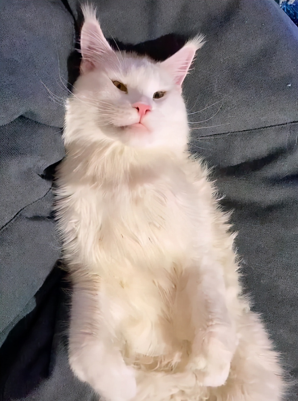 身为一只缅因猫,Kefir现在还在长身体的阶段,