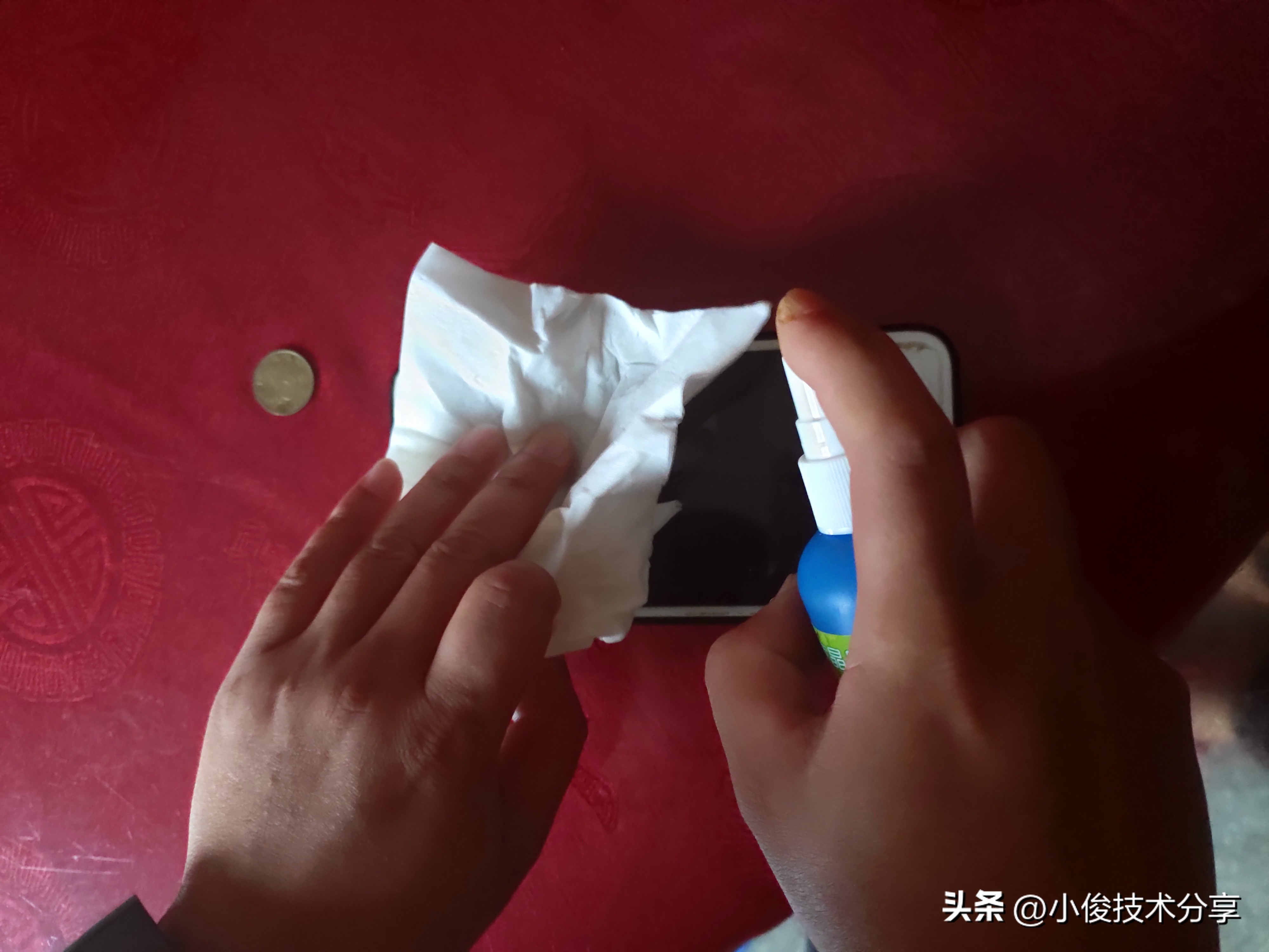 我们在手机屏幕上有污渍时,这个时候,我们可以使用酒精来清洁手机屏幕!我们首先把酒精对着屏幕喷一下,喷洒完成之后,然后用纸巾擦拭,当然这个用纸巾擦拭也是有讲究的,也不是胡乱擦拭的,因为胡乱擦拭是没有效果不能擦拭干净的,正确的做法是,我们把纸巾放在手机屏幕上,然后顺着一个方向从上往下擦拭,这样擦拭才可以把手机屏幕彻底清理干净!不仅如此,用酒精喷洒过的屏幕我们擦拭过之后,屏幕会特别干净,而且酒精还具有杀菌消毒的作用,可以把手机屏幕上残留的细菌和污渍都清理干净,最关键一点用酒精清洁过的屏幕是不容易沾灰尘的,而且也不容易留下手指印的,非常的实用!
