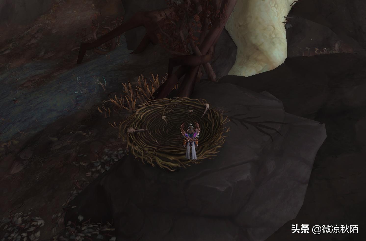 拿到“失落的刀翼兽之卵”,直接前往刻希亚左边的啸风之巢穴,坐标是“25:51”,这有个刀翼兽的巢穴,点击后把卵放回巢穴。第一次送回刀翼兽的卵,会刷新一个红名的守护者,击败就行,后续放回卵,上空的“黯光巢母”会对你发出感激的声音,送回六次刀翼兽的卵,就能得到“黯光刀翼兽”坐骑,最快三天可以拿到坐骑。