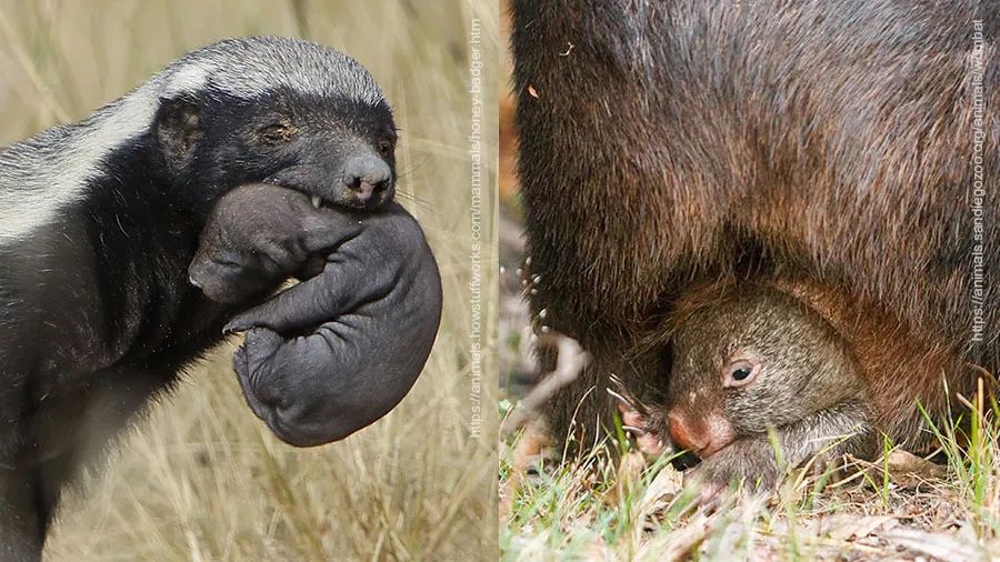 ▲ 獾(胎盘类)和袋熊(有袋类)