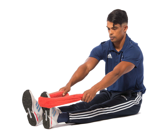 - 一条腿伸直,另一条腿稍微弯曲,伸直的腿将是被拉伸的一侧。