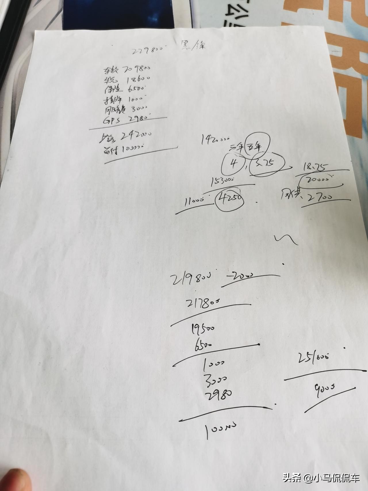 我选的是皓影2.0L混动两驱豪华型,厂商指导价22.98万,贷款买给优惠了2万元。由于我现在还投资了点小项目,所以就打算多贷点款,手头多留点资金周转。下面说一下具体购车费用,购置税1.86万,保险6500元,上牌费1000元,金融服务费3000元, GPS费2980元,总价24.2万。贷款14万,5年总利息2.2万,月供2700元,加上贷款利息的话总落地是26.4万。送了5年15次保养,电动尾门,还有脚垫、后备箱垫等装潢。