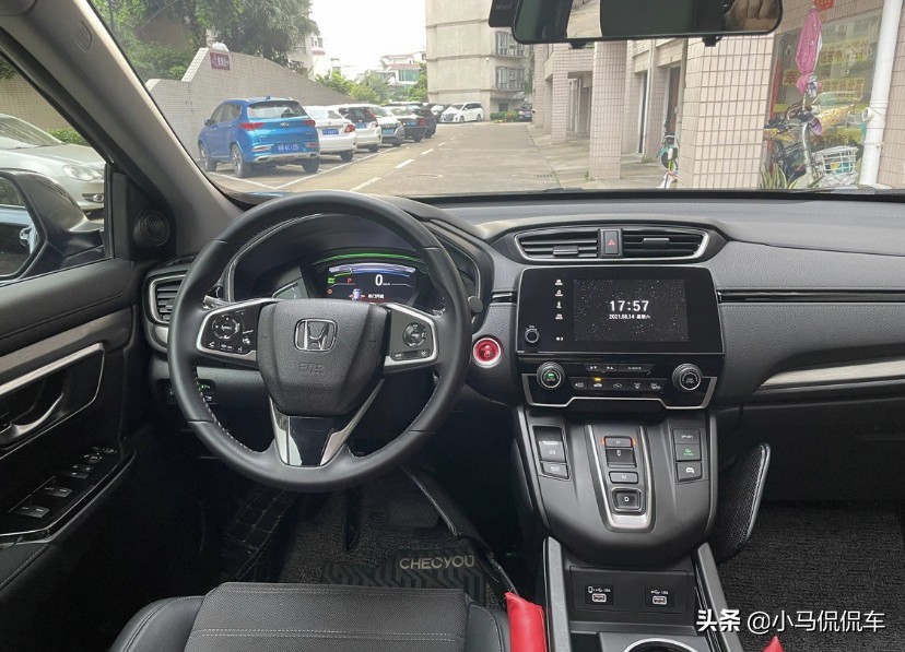 不能报喜不报忧,最后聊聊这款车的缺点吧,近期打算入手这款车的朋友可以作为参考。在性能方面和空间表现方面,混动版皓影没得挑,但是在舒适性配置方面,本田给得真是太吝啬了。落地二十五六万的车还配一个7英寸中控,里边还啥功能都没有,最大的作用就是显示倒车影像。副驾驶是手动调节的,扎心!学人家宝马不给备胎,又不给配防爆轮胎,恶心!还有车漆特别的薄,里里外外细看的话,感觉做工挺粗糙,中控用料也不是很好,内饰布局不如外观好看。