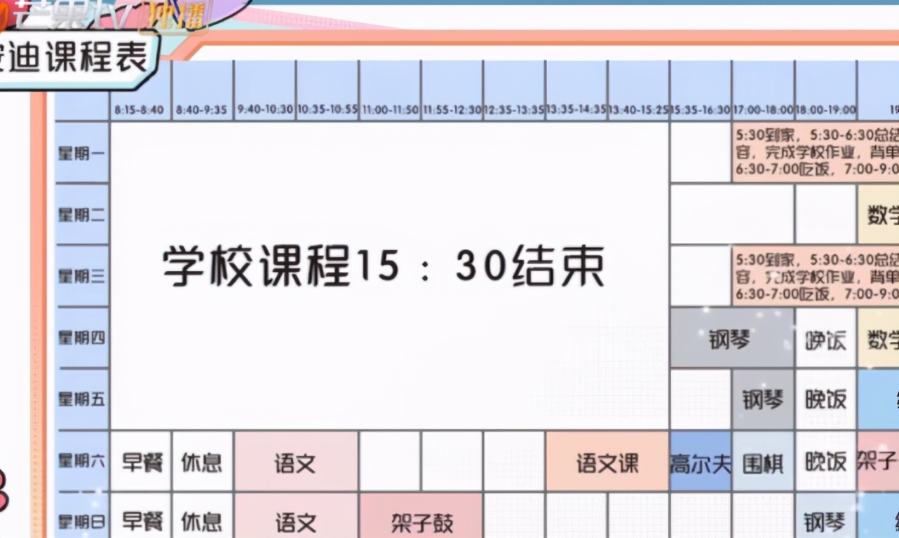 除了正常上课之外,每天下午三点半放学之后,安迪还要上网课和兴趣班。周六和周日除了语文课之外,还要学习围棋、高尔夫和架子鼓。