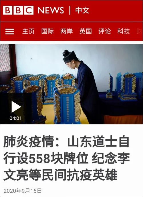 外媒注意到了,并不是因为我道士的身份,也许这个身份的确更引人关注一些。但是我想,外媒他们更关注的是中国有人在做着编列名单、弘扬抗疫精神的事情,在做着希望所有中国人记住抗疫英雄的事情。