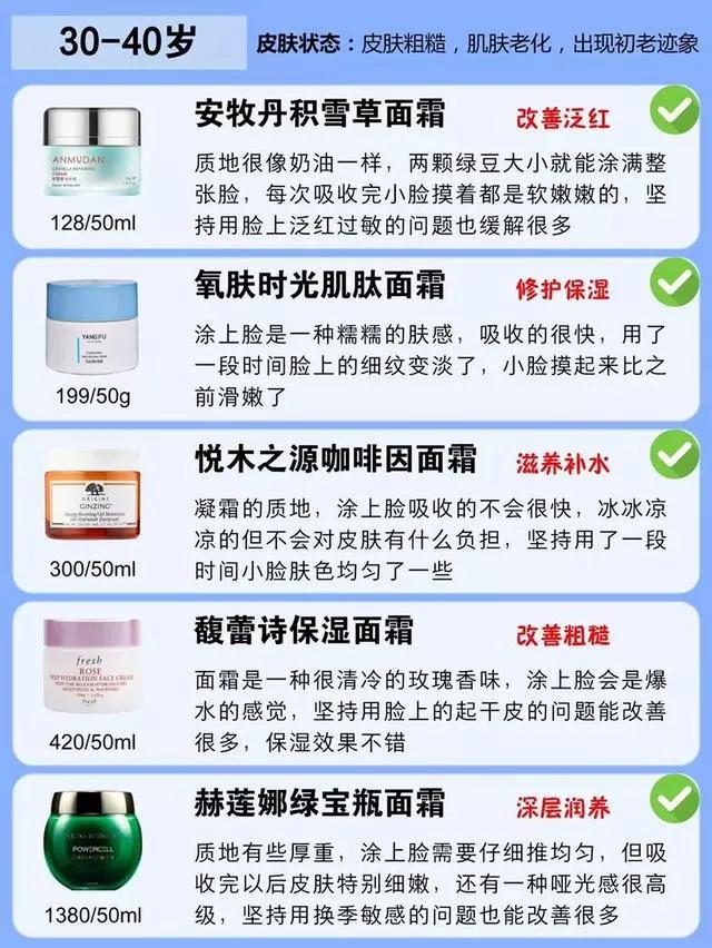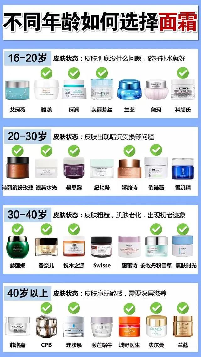 今天就分享了适合不同年龄段的面霜