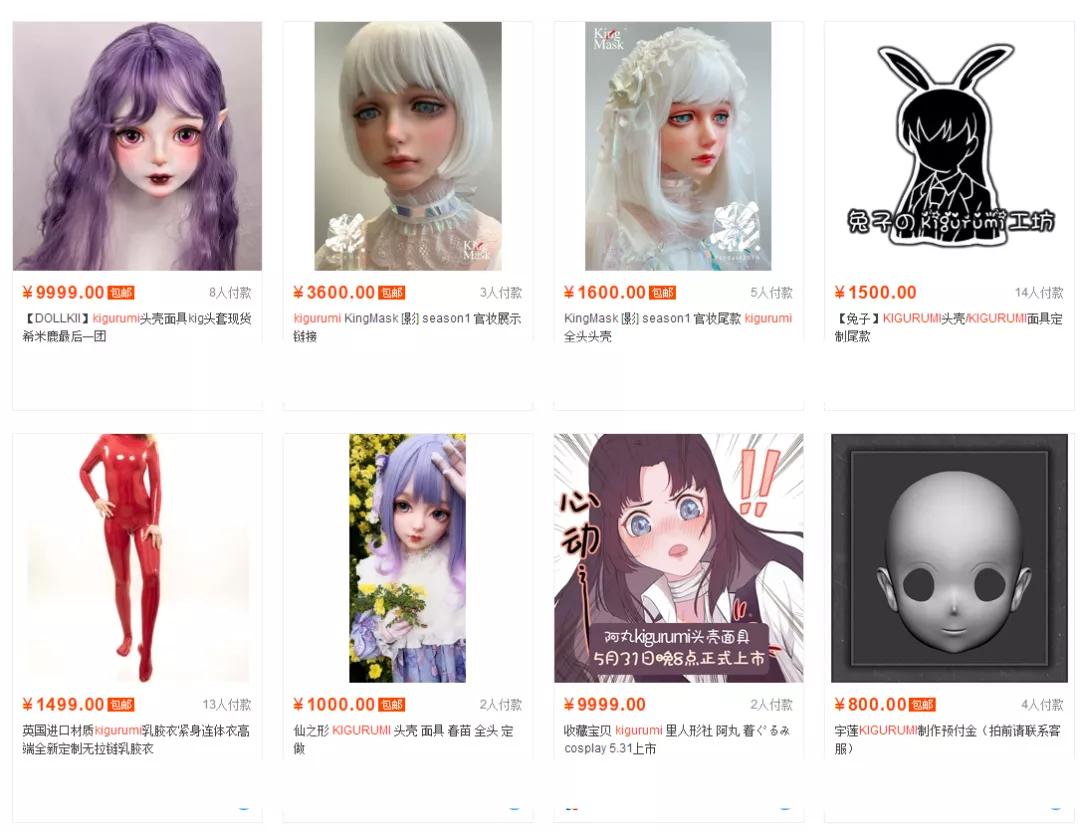上图所示为某宝通过kigurumi关键词搜索的反馈,可以看到,价格较低的头套至少也在千来块以上,而品质好点的紧身服也差不多这个价码,再加上各种外穿服饰和配件,一次kigurumi的体验没个5千大洋是不太可能拿下的。