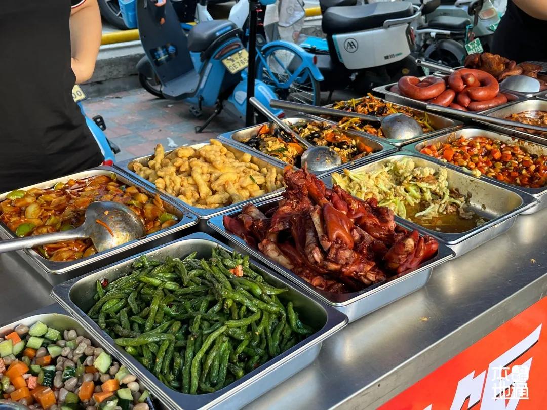 确实,很多餐饮都有摆摊,不完全统计,周一至周五摆摊时间在上午11点左右,下午5点或5点半左右。周六日中午、晚上摆摊时间或有提前,通妹去了几家,很多家都有免费的绿豆汤等饮品!