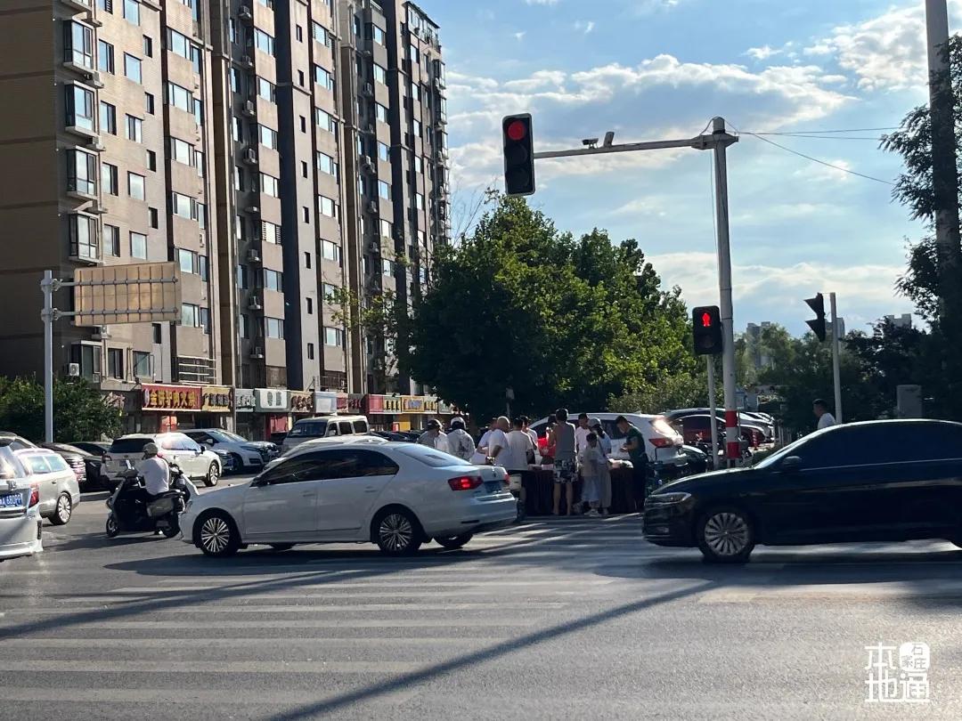 走到珠峰大街淮河道交叉口,也有摆摊的。
