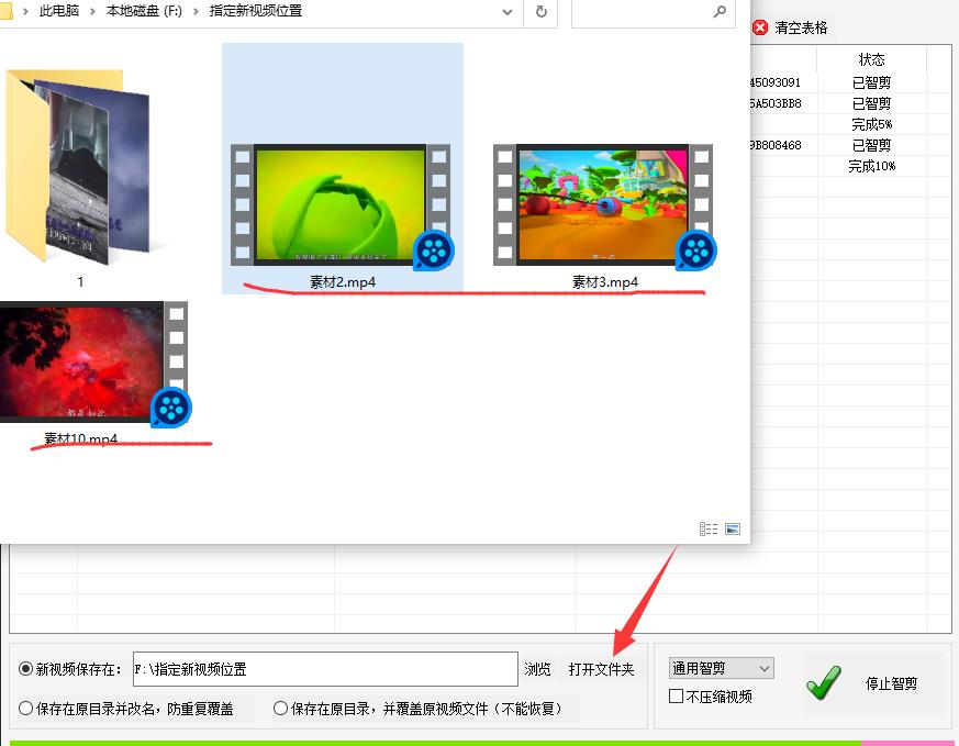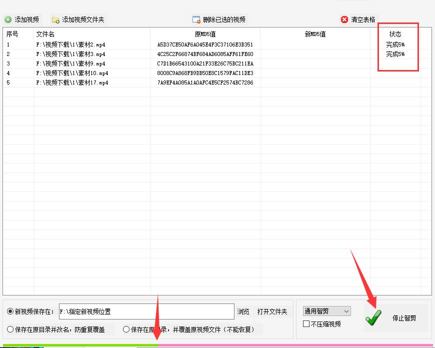 操作5、都设置无误后点击“开始智剪”,过程可通过状态栏和滚动条查看进度情况。