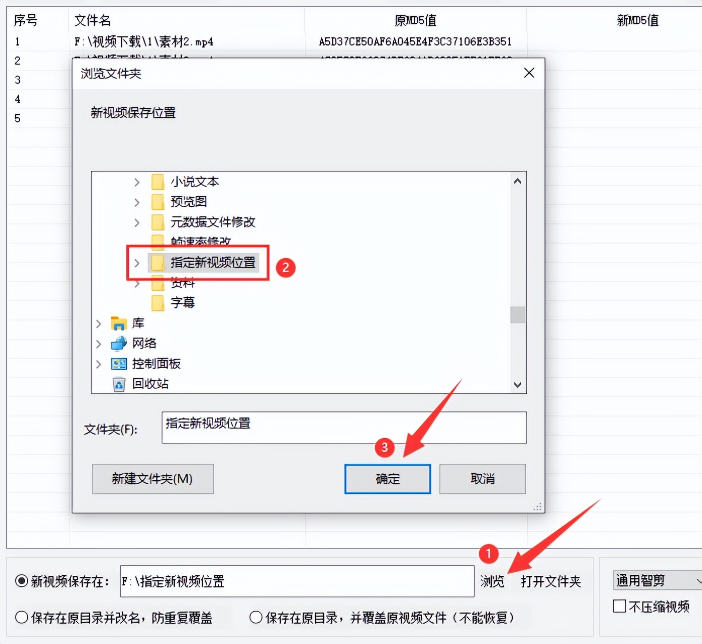 操作3、在面板上点击“浏览”设置新视频的保存位置。