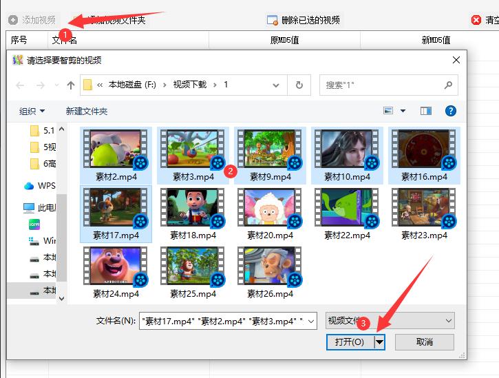 操作2、点击“添加视频”找到视频文件并点击“打开”。