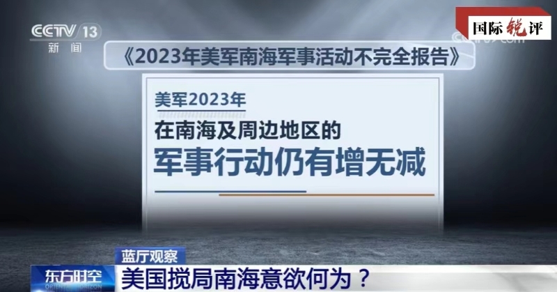 2023年,随着菲律宾频频在南海挑衅滋事,美军加大了在南海及周边地区的军事行动。据“南海战略态势感知计划”发布的报告,过去一年美航母打击群和两栖戒备群大型编队8次进入南海,停留时间、训练强度和针对性都显著增强;至少有11艘攻击核潜艇和2艘战略导弹核潜艇先后出现在南海及周边海域。