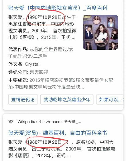 娱乐圈中因为年龄出现争议的明星还是很多的,不光是易烊千玺,女星张天爱之前就因为在网站百科中显示的年龄不断变小而引起了质疑,在凭借《太子妃升职记》走红之前,很多新闻稿写她是88年出生,维基百科也是写的88年,而后来凭《太子妃》走红之后的一段时间,她在某网站的百科出生日期改到了90年,而去年又被网友发现变成了92年,而且更令网友质疑的是,到了今年,该网站百科上竟然直接不显示出生年份,只显示生日日期,因此很多网友都调侃称张天爱的年龄真的是未解之谜啊!