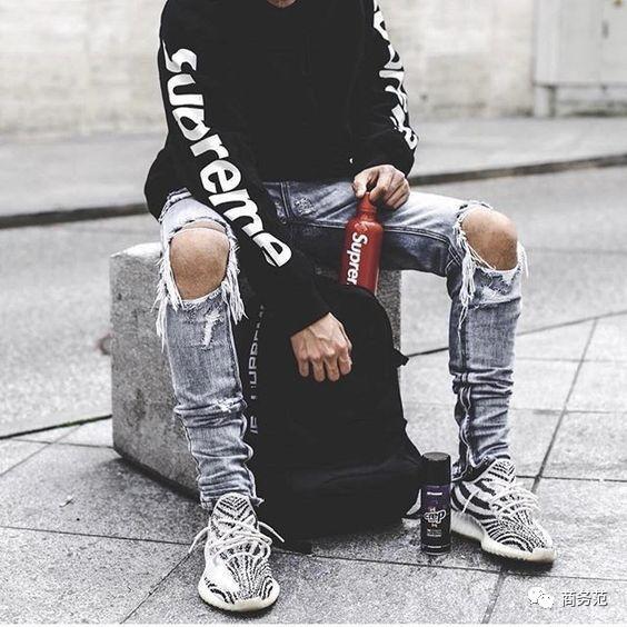 在下衣的搭配上,对于男性来说紧身破洞裤是标配,如果裤子不是紧身的,也可以手动营造紧身的感觉。