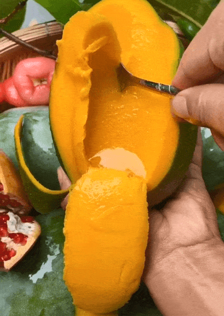 一口下去满满果肉,怎么吃都咬不到核,这下再也不用狂啃芒果核啦~就像喝了一大桶酸奶,再也不用舔酸奶盖一样,超级满足!