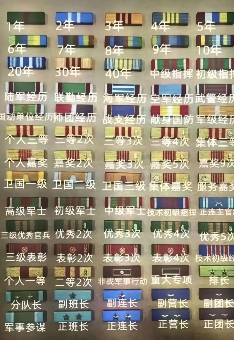 根据我国相关规定,2023年开始采用的勋表一共有4大类32种,包含荣誉表彰类、服役经历类、岗位职务层级类、服役年限类这4个类别。