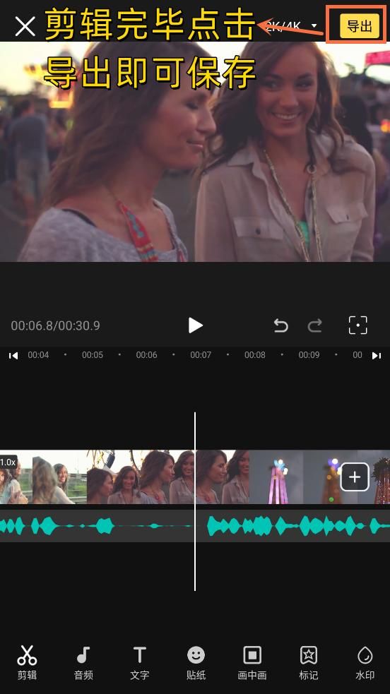 待视频全部剪辑完成,点击【导出】就可以对视频进行保存啦。