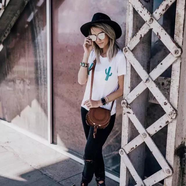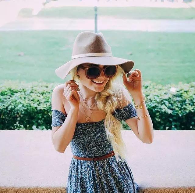 拥有宽大帽边的TA遮阳效果最好,不过墨镜搭配得不好,很容易秒变村姑。各路街拍潮人都喜欢搭配飞行员或oversize墨镜,学她们搭,准没错!
