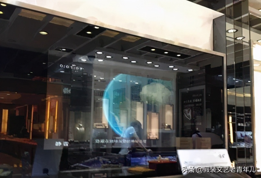 图六:高大上的钻石柜台搭配的沟通媒介是电视墙,播放着像好莱坞般的大制作科教片《钻石的来源》。观看电影时同时了解了为什么钻石恒久远、一颗永流传,情侣们可不得纷纷应景买下钻戒?