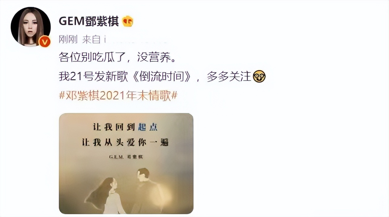 有关邓紫棋与男友领证的说法,令广大网友十分惊讶,毕竟在去年年底两人刚被曝出分手的传闻。当时邓紫棋并没有直接回应,只是发文称:别吃瓜,没营养,顺便为自己的新歌做一下宣传。对于这种暧昧不清的回应态度,也让两人的分手消息越传越真。