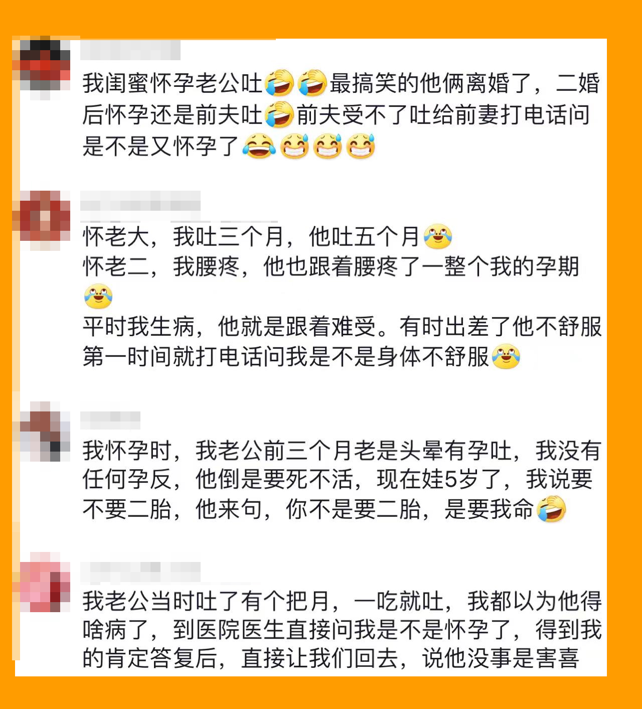 “我怀儿子,我老公孕吐,把我笑死。”