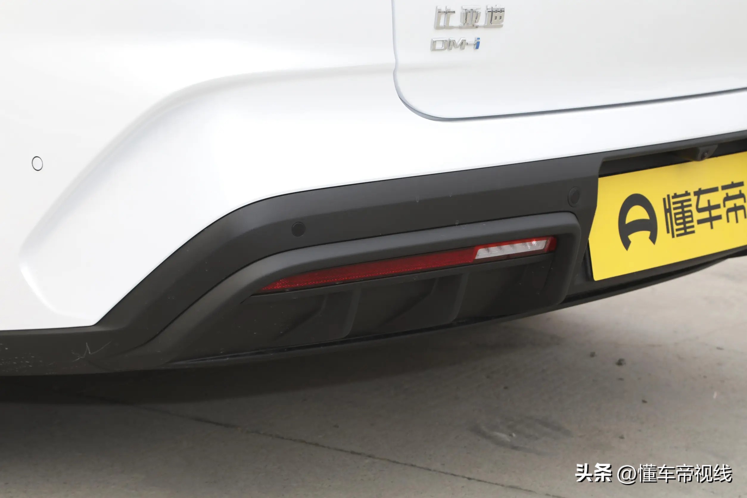 车尾部分,2025款秦L DM-i智驾版的变化仍然体现在智驾硬件层面,车顶增加鲨鱼鳍摄像头,后包围处新增了2024款车型所不具备的雷达传感器。另外,尾门右下角“天神之眼”标识也表明了车型身份。