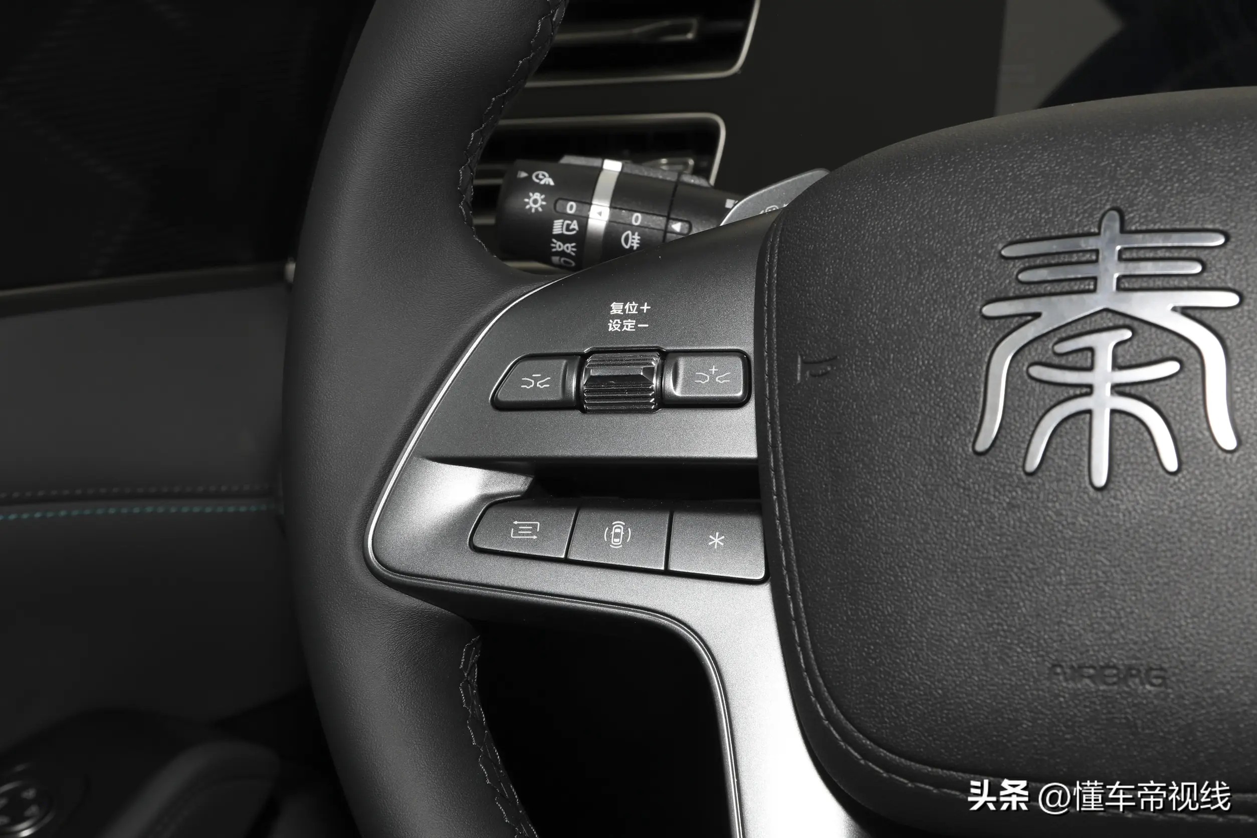 内饰方面,2025款秦L DM-i智驾版整体布局与现款车型一致,120KM领先型预计仍配备8.8英寸液晶仪表及12.8英寸悬浮式中控屏。不过,三辐式D型方向盘设计细节及材质有一定调整,左侧按键根据智驾系统的变化在功能上也与现款不同,同时增加了智驾功能拨片。此外,从新车的副仪表区域还可以发现自动泊车功能。
