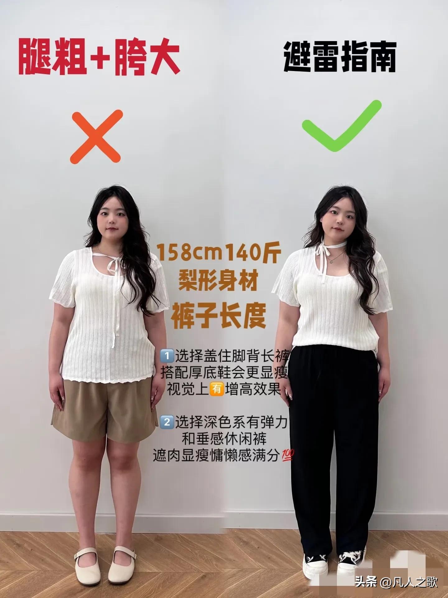 这套粉色的衣服,瘦的人穿是宽松版型,有一种自然的休闲感,而右边这位姐妹,还不算太胖,只是腿上微微有点肉,穿上都是“灾难性”的呈现,直接就把大腿两边的肉肉全部暴露出来了,时尚的衣服瞬间变“土气”。