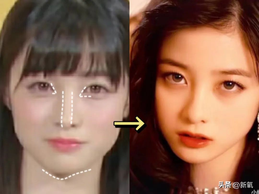 小圆脸幼态比例(甜的部分)+尖锐的鼻子和眼睛(冷的细节)=冷艳甜妹