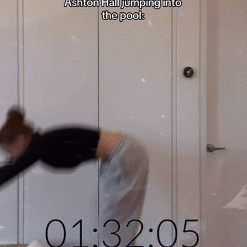 有一次他拍摄了关于游泳跳水的画面,起跳时间为7:36分,入水时间瞬间来到了7:40分。