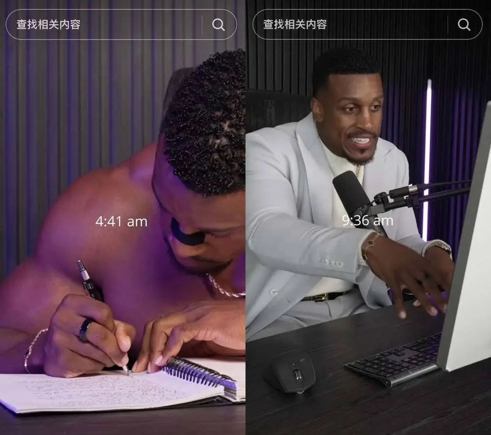 可以这么理解——Ashton Hall的自律vlog,就是性转版的“精致女孩坐高铁”。一条1分钟的短视频包含近百个分镜,每个镜头都会不经意露出他的奢侈品,每一秒都展示了他精致到毛孔的自律人生。
