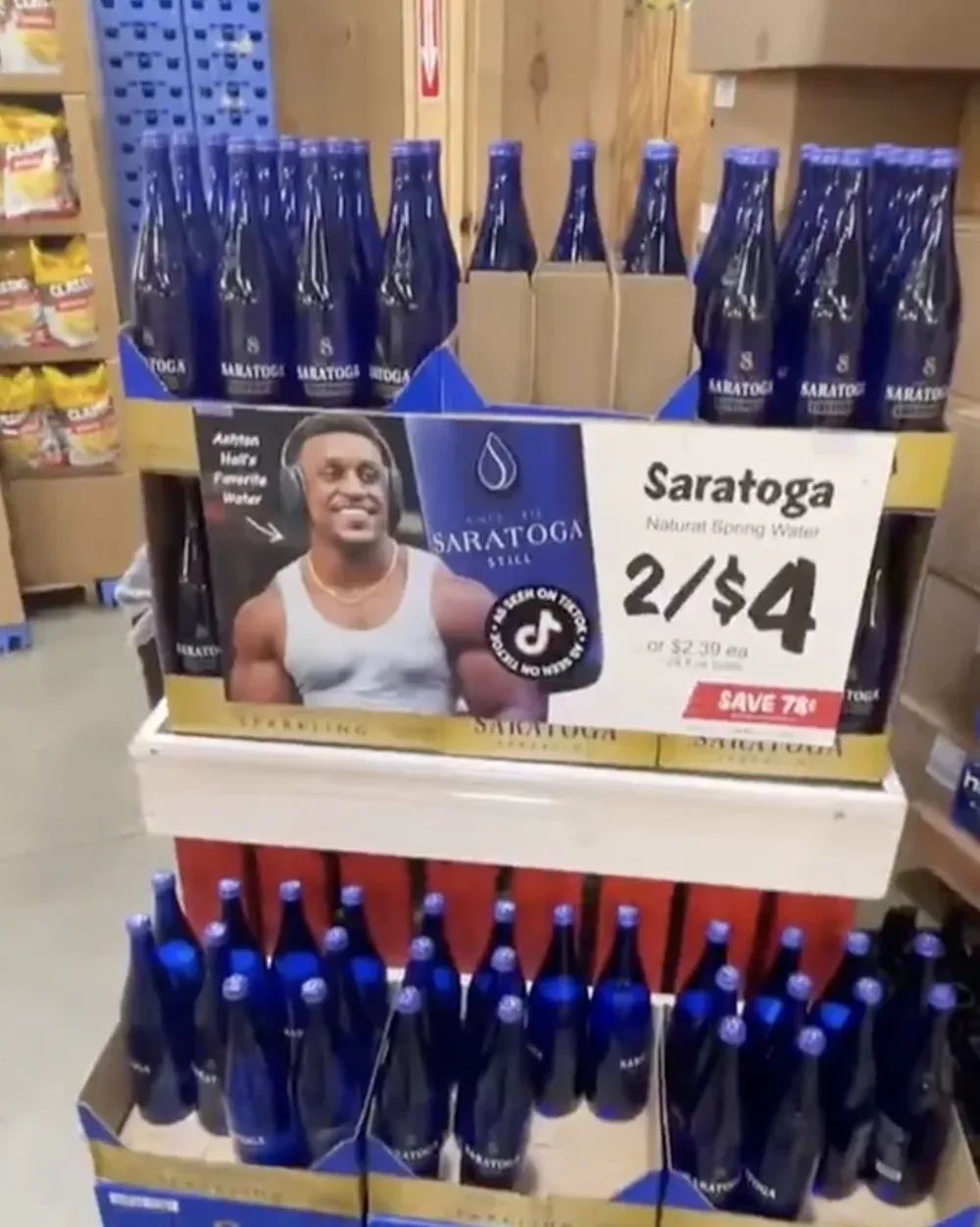 美国超市的萨拉托加气泡水放上了Ashton的照片