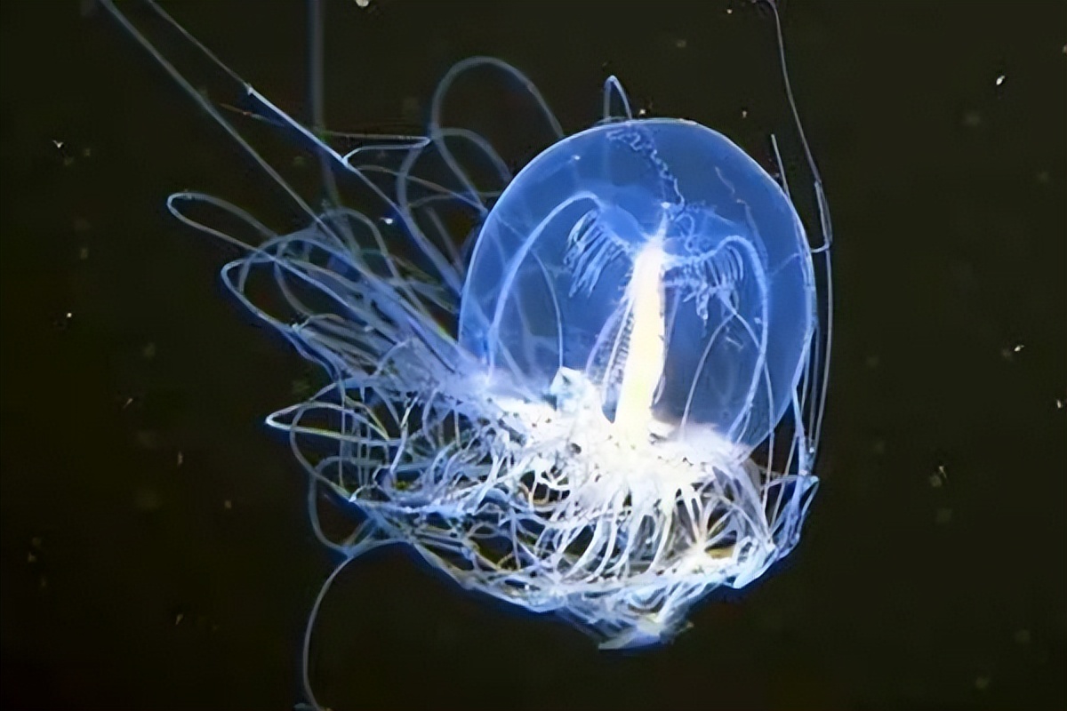 正常水母性发育成熟,完成繁殖任务后不久,寿命就走到了尽头。灯塔水母十分神奇,当它们完全性成熟后,可以从新回到幼虫状态,然后利用分裂的方式复制出几百个与自己一样的个体。