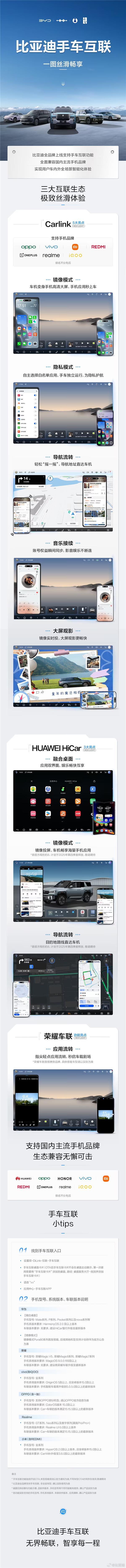 比亚迪最近宣布了一个好消息,它的全系车型都上线了手车互联功能,而且能兼容国内大部分主流手机品牌,比如华为、OPPO、vivo、小米、荣耀、realme、一加和iQOO等。